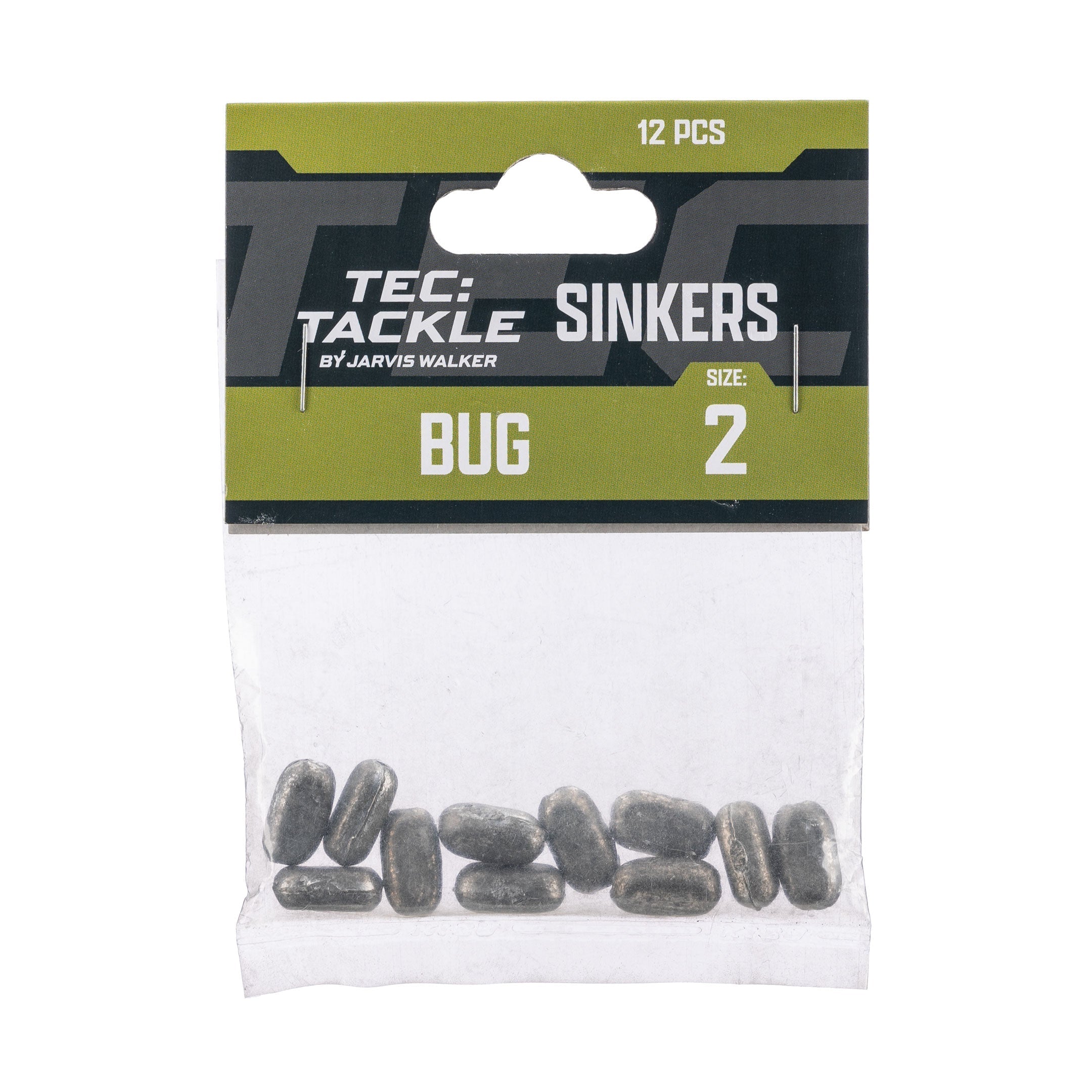 Bug sinkers are ideal for estuary and lake fishing where a light, low profile lead is preferred. They are often used in a running sinker rig, where the main line is threaded through the sinker and left unattached, so it can move more freely, usually positioned either running directly to the hook, or restricted to running along the main line above a swivel connection. Unlike small ball sinkers, the bug sinker's flat sides make it less prone to rolling along the bottom in current. Use a bug sinker when water flow is a little too fast for split shot, but not so fast as to require something heavy.