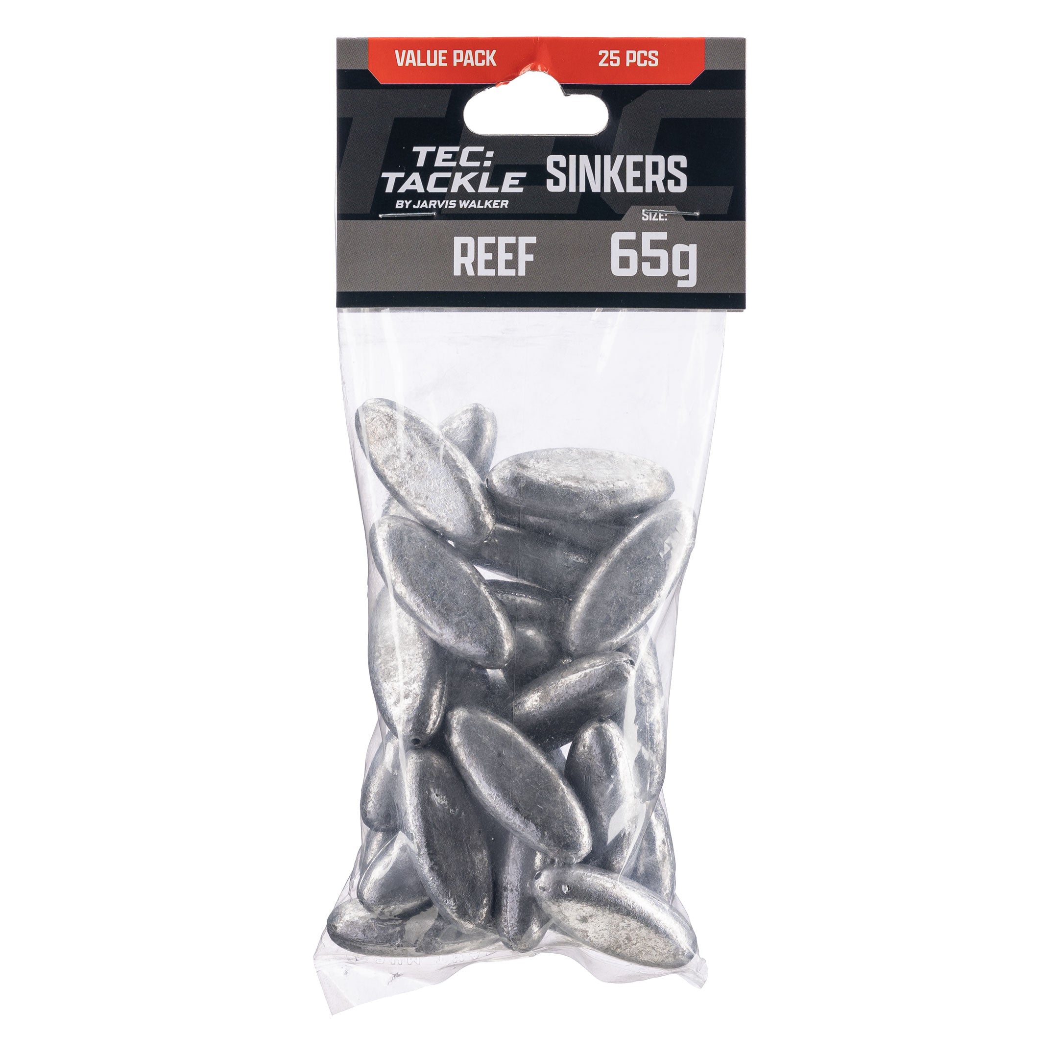 Reef sinkers are preferred when bulk weight is required to reach the seabed in deep water or strong currents. The sleek shape cuts through the water on the drop, avoiding flutter, so your baits land where you want them to. The line runs through the centre of reef sinkers so they can be set up as a running sinker, or fixed to your line for a paternoster (dropper) style rig, making them more versatile than top-tied heavyweight sinkers.