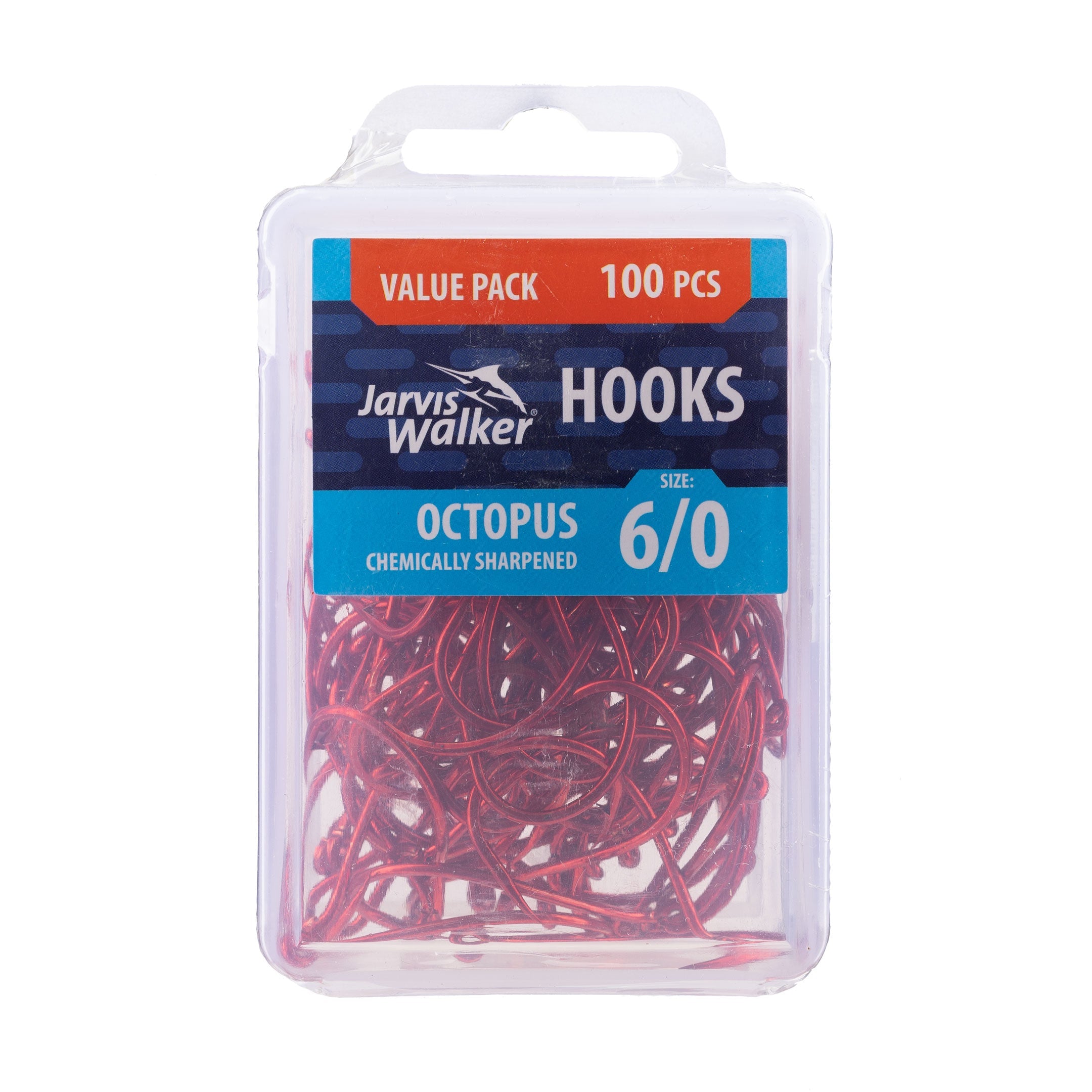 Jarvis Walker Suicide Red Chemically Sharpened Hooks are one of the most popular patterns in sizes from 1/0 to 6/0 and are perfect hook for a range of species. The smaller 1/0 and 2/0 are perfect for freshwater prey like Golden Perch and Cod. They are also a great choice for going after inshore and estuary fish like Bream and Flathead. The 3/0, 4/0 and 5/0 will come in handy when you go after strong medium sized trout, Mackerel and Snapper. The big hook, 6/0 will be your go to when chasing Jewfish, Kingfish, Barracuda or other reef species that can put up a good fight.